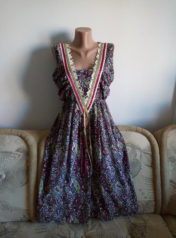Прекрасное летнее платье без рукавов, отрезное по талии, убранное на резинку. Пог 46 Пит 33/43 Победы 63 Длина 104