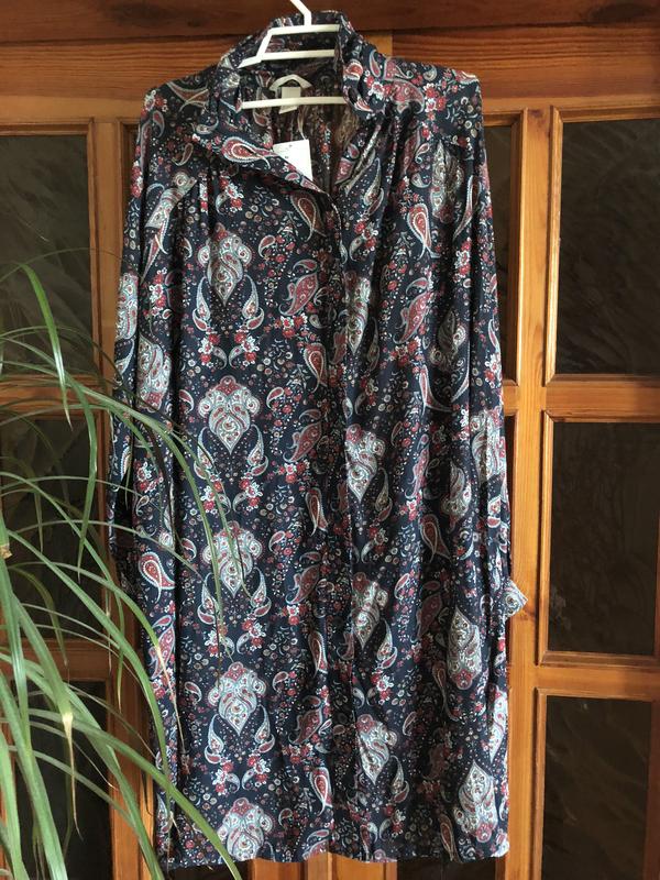 Новое платье-туника свободного кроя на пуговицах. По фигуре свободно. На рост 172 см, чуть выше колен. Рукав 64-65 см. По бирке XC но и на M/L будет отлично, сядет свободно. Длина 90 см.