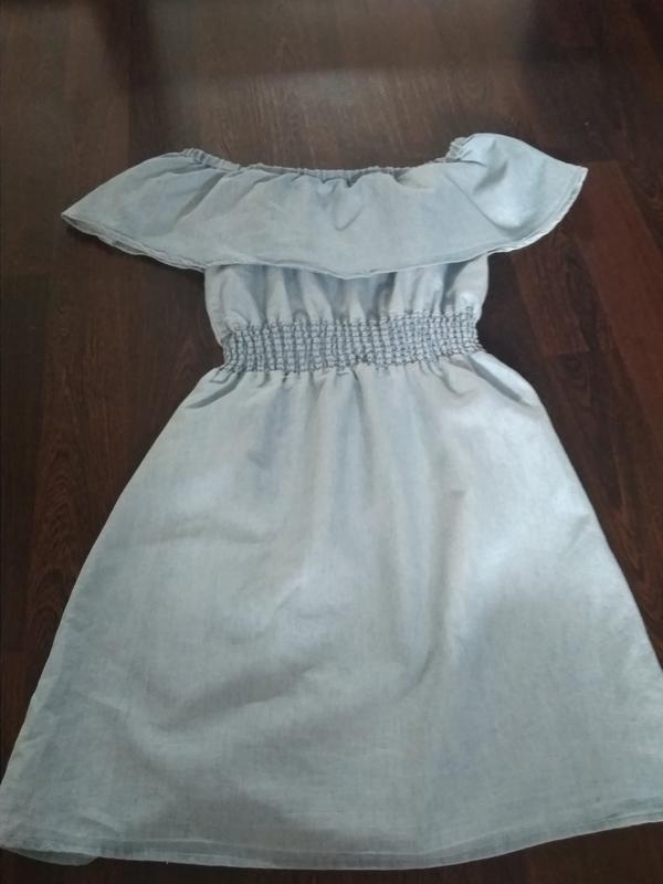 Лёгкое котоновое платье С воланом на плечах Носиться на плечах Длина от подмышки - 74см Ширина от подмышки к подмышки - 50см Пояс на резинке