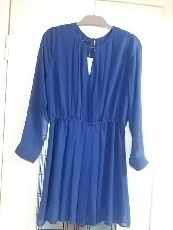 новое шифоновое платье красивого цвета , на фото не передает реальный цвет , ближе к сине- фиолетовому. Есть подкладка. Размер на бирке 44. Длина 90см пог 46см пот 37см {есть резинка, тянется до 50см} поб 55см
