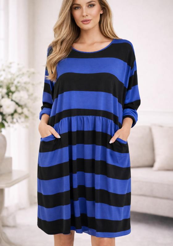 Платье оверсайз.В сине черную полоску. С врезными карманами.Свободное от груди. Пог 60.Длина 110см.Рукав длинный на подворот. Ткань натуральный котон.Плотный не тонкий.