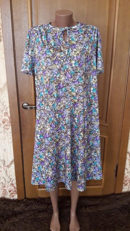 Платье в цветочный принт. Без дефектов ( пятен и зацепок ). Тянется. Ориентируйтесь на замеры. Длина 104 ПОГ 56-58 ПОТ 53-55 ПОБ 57-63 Спрашивайте буду рада ответить на все ваши вопросы!!! Смотрите другие мои объявления для Вас есть качественная и недорогая одежда !!!