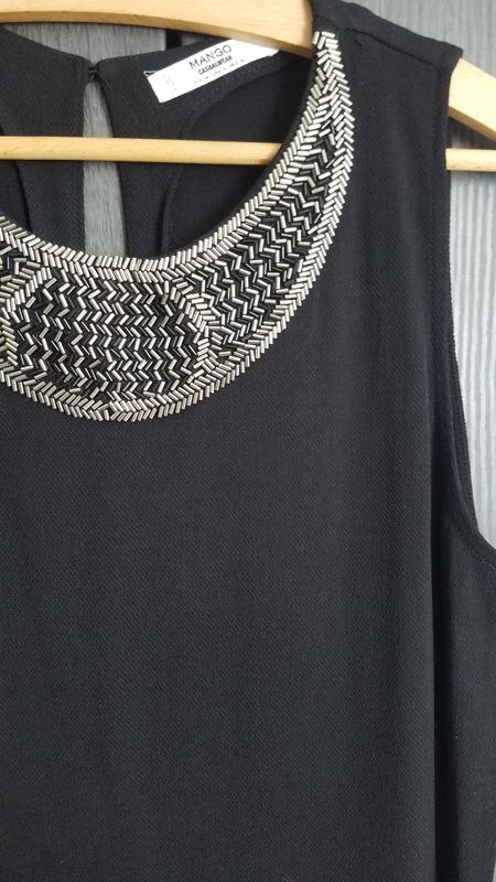 Черное платье с вышивкой бисером со свободной талией. Тканина структурна. Размер S. Замеры: Пог 47 см, длина 92 см, поб 49 см. #C2