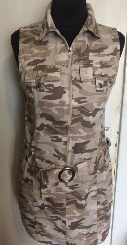 Платье в стиле милитари . Размер указан л, реально на м. По груди 52/ длина 80/ по талия 48/ по бёдра 57.