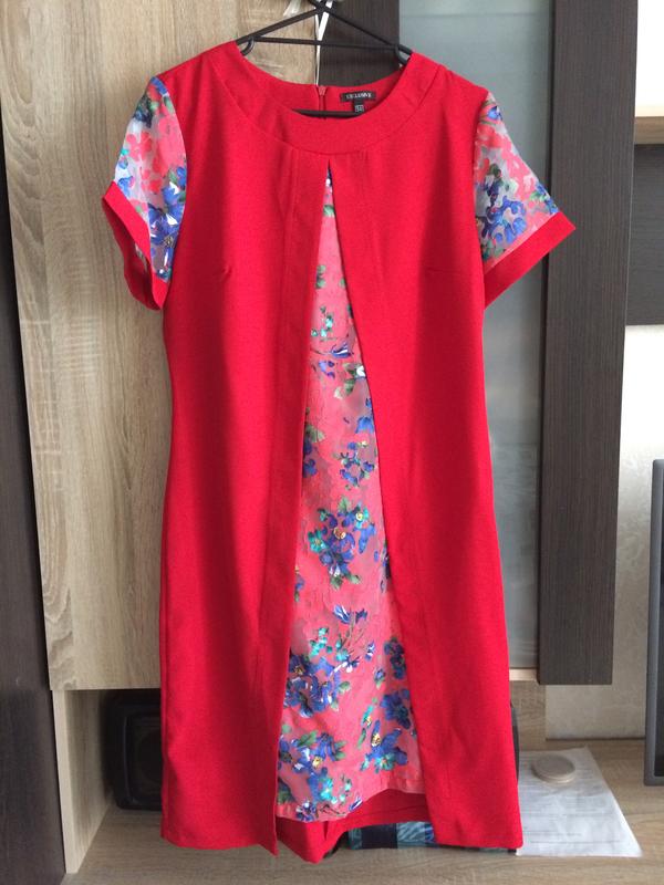 Новое платье. Размер 50. Длина цветной вставки 94 см, общая длина 100 см, плечи 40 см, ПГ 50 см, ПТ 46 см, рукав 20 см. Немного тянется.