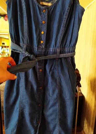 отличное платье на тонких брительках. Коттон облегченный. Состояние на 5.П.о.т.-35, длина 93.п.о.б.-47, п. о. г-47. Есть карманы, планка ниже талии не растегивается, верхняя часть на кнопках (растегивается)