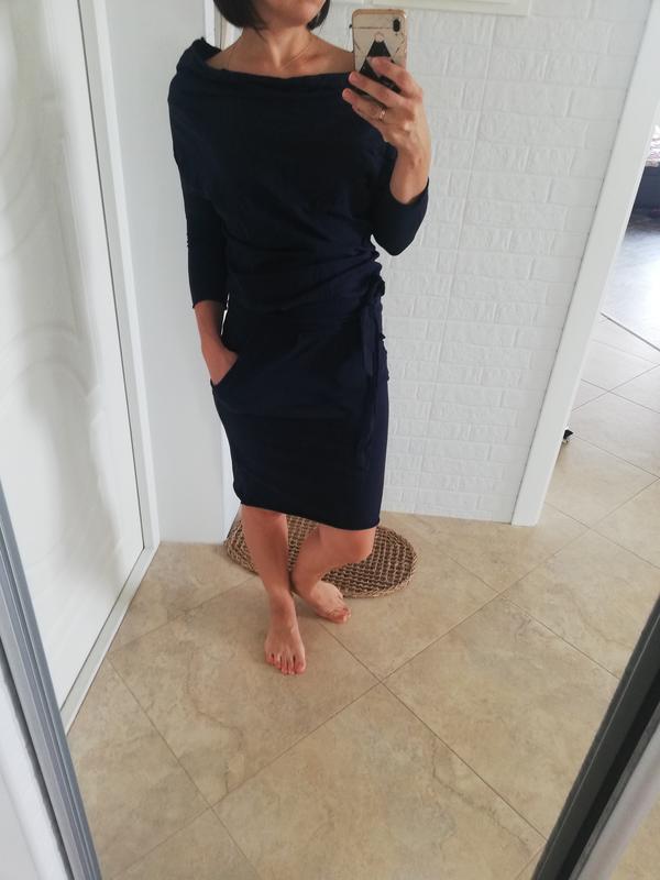 Темно-синє плаття міді з широкою горловиною, осіннє або на прохолодний літній вечір, розмір 42-44 S-M зростання на фото 168 см стан ідеальне