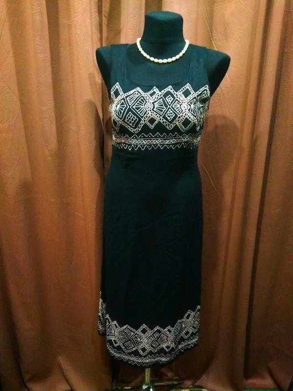 Платье 44-46 Германия,чёрное с беж.орнаментом,в очень хорошем состоянии,ПОГ 46,ПОТ 38,длина 104,не тянется,прозрачное на лёгкой подкладке-воздушное.Манекен 46р.