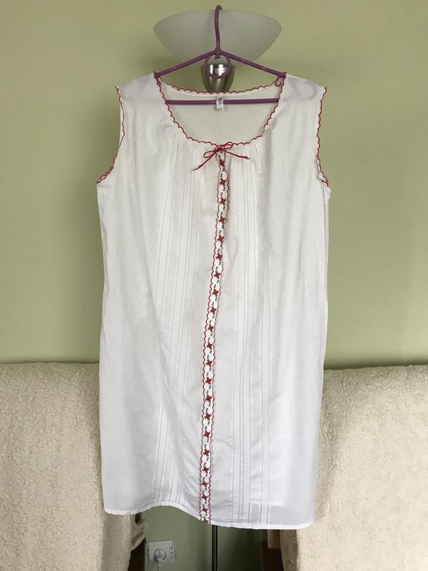 Длинна- 93, поб груди и талии - 61. Чистый хлопок.