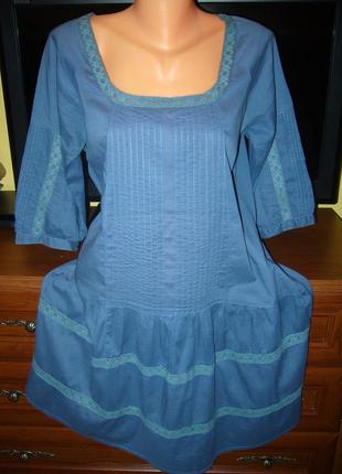 Очень классное платьице от известного бренда.Состояние нового. Смотрится просто великолепно под любую обувку. Особенно под мокасины. В нем легко и не жарко. Пошито в Индии. Размер М. Замеры: по груди - 51 см.,талия - 50 см., бедра(по отрезу)- 58 см., длина - 95 см., рукав от горловины - 47 см., по внутрен.шву рукав - 29 см.
