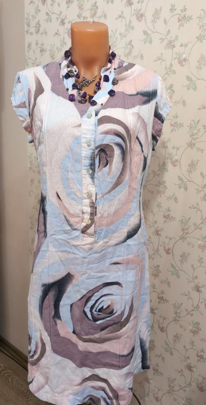 оплата мені на картку,відправка укр та нова пошта Плаття льон,ніжні пастельні тони,відмінно сидить по фігурі.Від підмишки до підмвшки десь 48-49см