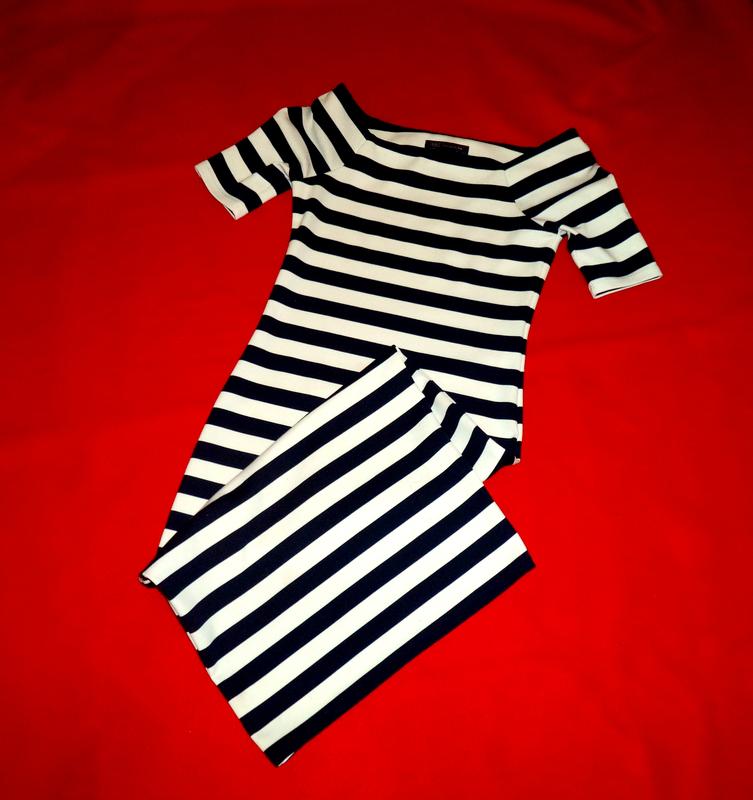 Платье облегающее с рисунком в полоску и открытыми плечами от легендарного бренда m&s . ✔