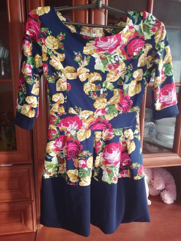 Красивое платье. Нарядное, принт вышывка! С боку молния.