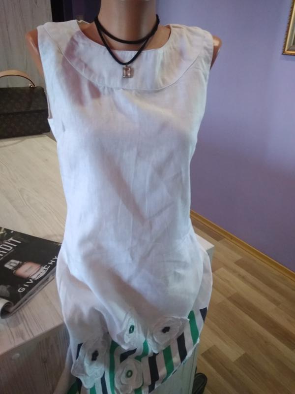 Супер льняное платье белое,с рисунком внизу, без дефектов крутая модель.