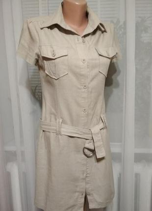 Шикарное льняное платье-сафари. Купила своей дочери здесь на шафе, но ей не понравилось. Теперь лежит без дела, может найдётся для него новая хозяйка.