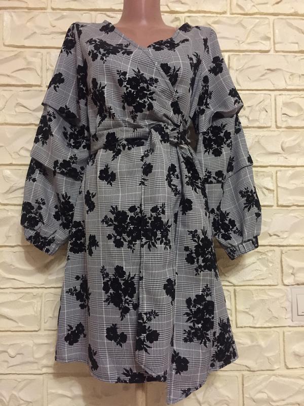 Платье на запахе в хорошем состоянии без пятен и потёртостей. Грудь 86см. Талия 74см. От плеча к плечу 35см. Рукав 52см. Спина 33см. Длина 87см.