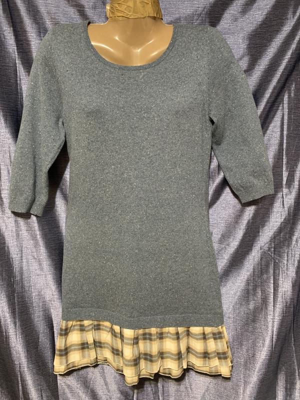 Трикотажне плаття з комбінованою оборкою клітку, рукав 3/4. Заміри: довжина - 88 см., плечі - 37см., рукав - 42 см., ПОГ - 44см., , ПОТ - 40см., ПОБ - 45см.