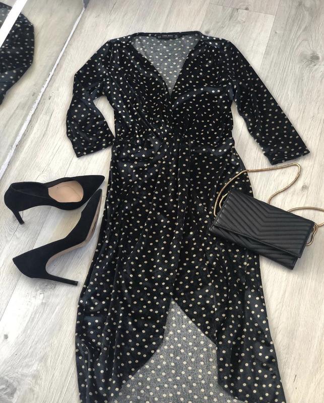 Оксамитове трендовий сукню на запах відомого бренду Довжина 109 ПІТ-34 Побіди 45/49 вільно Пог -43/47 Плечі 36 Рукав 42 Розмір Xs-s