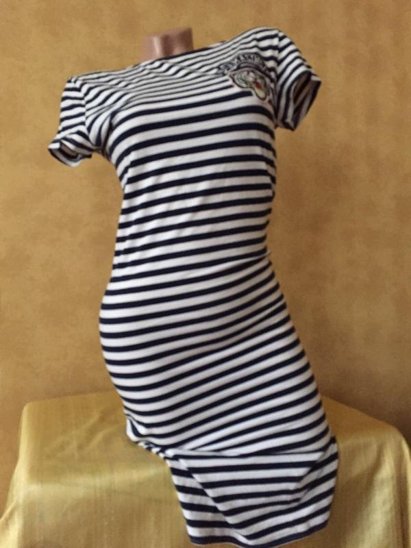 Стрейчевое платье миди в морскую полоску с вырезом на спине