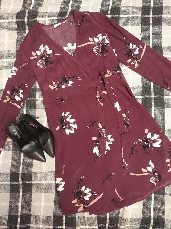 Плаття натуральне,на запах,кольору марсаль,квітковий принт,розмір Xs/S,стан ідеальний,без дефектів (сток)