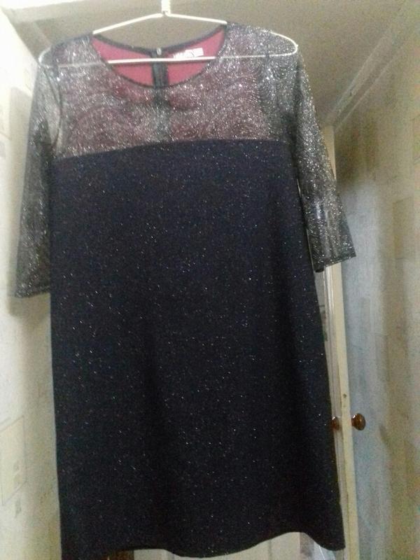 Платье нарядное. Блестящее. Рукав сетка . Сзади на змейке. Ткань плотный джинс