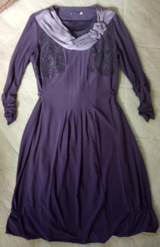 Сукня без нюансів,є підкладка,рукави і низ сукні декороване резиночками. Заміри: ПОГ-50,ПОТ-46-47,ПОБІДИ-56,довжина-103 див., тканина стрейч, трохи тягнеться.Виробництво Білорусь. Розмір написаний-52, підійде і на 46 ,48 і 50 наш.
