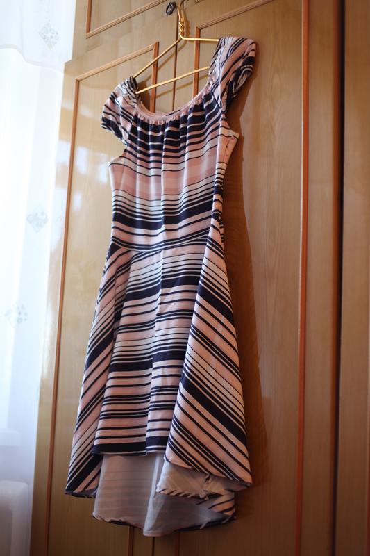Платье в горизонтальную полоску, с асиметричным низом. Ткань тянется. Надето пару раз, на меня большое. Вналичии много платьев, разгружаю шкаф.