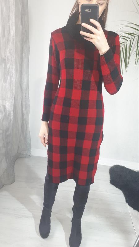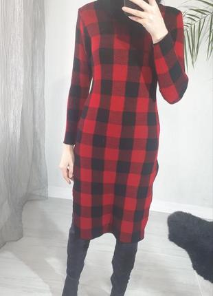 Теплое вязаное платье/платье с длинным рукавом, платье теплое миди/платье в клеточку