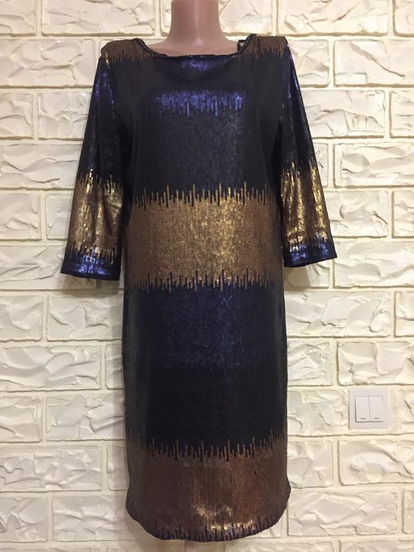 Платье в паетках на подкладке. Длина 90см. Грудь 102см.Бедра 90см. Рукав 3/5.