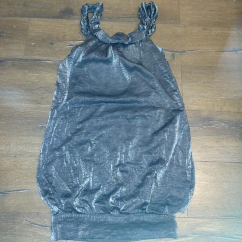 до колен, цвет мокрого асфальта)) метталик. скрывает все недостатки фигуры и подчёркивает достоинства! размер универсальный и на С и на Л подойдет
