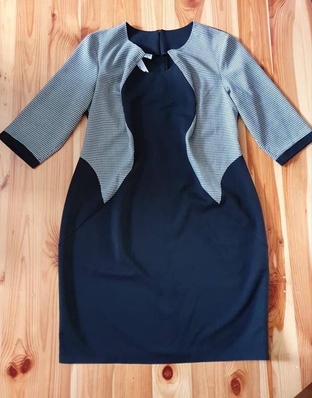 Платье с имитацией жакета. Ог 66 см, от 60 см, об 68 см. Рукав 48 см. Длина 115 см.