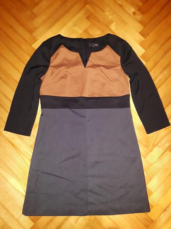 Плотная ткань, на подкладке, сзади по спине замок.Отличная универсальная вещь! Состояние новой вещи, одето несколько раз Ширина в плечах-42 ,полубхват груди-50 ,длина от плеча вниз-87 ,длина рукава-50, полуобхват талии-46.5(в середине черной полосы), полуширина в самом низу-61