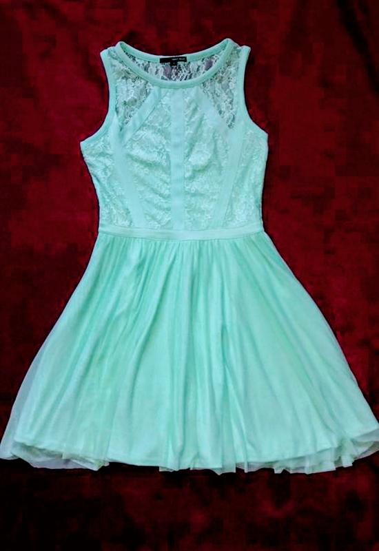Очень красивое платье приталенного кроя,фирма tally weijl. Юбка из мягкого фатина, верх - эластичный гипюр. Цвет: нежно-берюзовый. Размер 36. Одето пару раз для фотосессии . Перисылка укр и новой почтой.