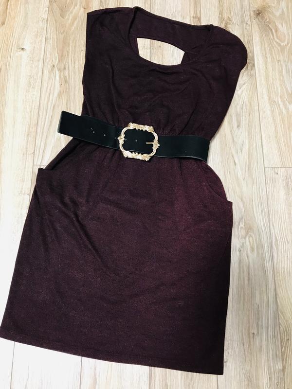 Красивый бордовый сарафан, нарядно смотрится одетым на рубашку. С карманами, сзади красивый вырез.