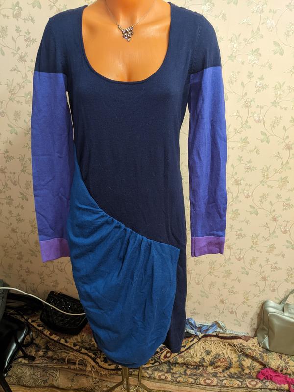 Платье из мягкой мериносовой шерсти,кашемировая шерсть состояние нового,не носилось, запросто без этикетки,цвет черный,синий,синий, подойдет на м-L,пахвы до подмышки полуобью 46см, это спокойное состояние,хорошо тянется,плечисм,длина 93см,длина рукава от плеча 63див,дуже мягенькое,шовковиста,це мериносова вовна