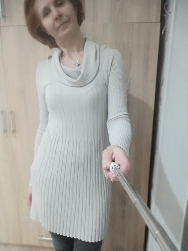 Бежевое, мягенькое, приятное к телу платье с воротником хомут, состояние идеальное, вискоза, замеры- длина 86 см, ПОГ 38-50, рукав от плеча 69 см, но на руке укорачивается потому как расходится по ширине. У меня проблемные руки, покупаю одежду с рукавами от 62 см, в этом платье рукавчик на меня садится хорошо.
