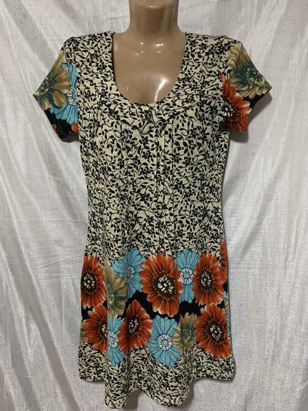 Трикотажное платье с коротким рукавом. Замеры: длина - 85см., плечи - 35см., ПОГ - 41см., ПОТ - 38см., ПОБ -47см