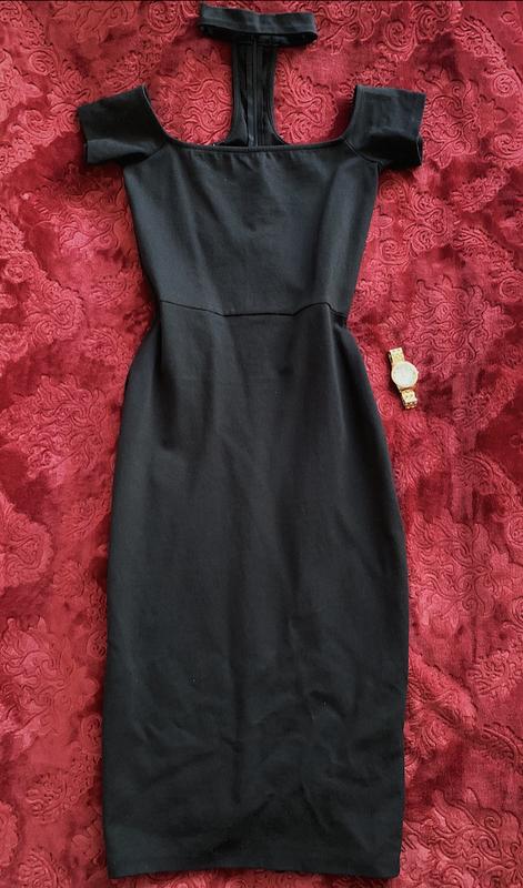 Бомбезное платье футляр Размер S Цвет чёрный Сзади разрез на платье