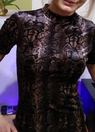 Вечернее платье ZARA в идеальном состоянии, надето один раз. Очень красивый принт под питона. Не полнит, ткань по типу бархата, хорошо тянется, не светит. Размер универсальный подойдет на S-M. Длина 106 см.
