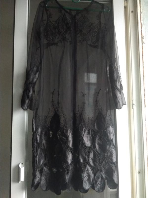 Новое!!! Шикарное!!! Очень красивое, стильное платье сетка С вышивкой, лепестки шёлковые Прямого кроя Застёгивается сзади на английском замке Одевается сверху на любое однотонного цвета платье К сожалению бренд срезан Длина - 69см Ширина от подмышки к подмышки - 45см Рукава - 60 см