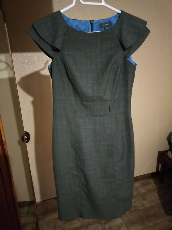 Красивое женское платье в офисном стиле,одевала один раз, состояние идеальное, на подкладке, ткань не тянется, длина по спинке - до 93 см, сзади замок 57 см, разрез внизу 22 см, в поясе около 37,5 см, под руками 42 см, в бедрах около 48 см, на этикетке указан размер 10, хорошо будет сидеть на размер 42-44, наверное, на мои бедра до 100 см тесное