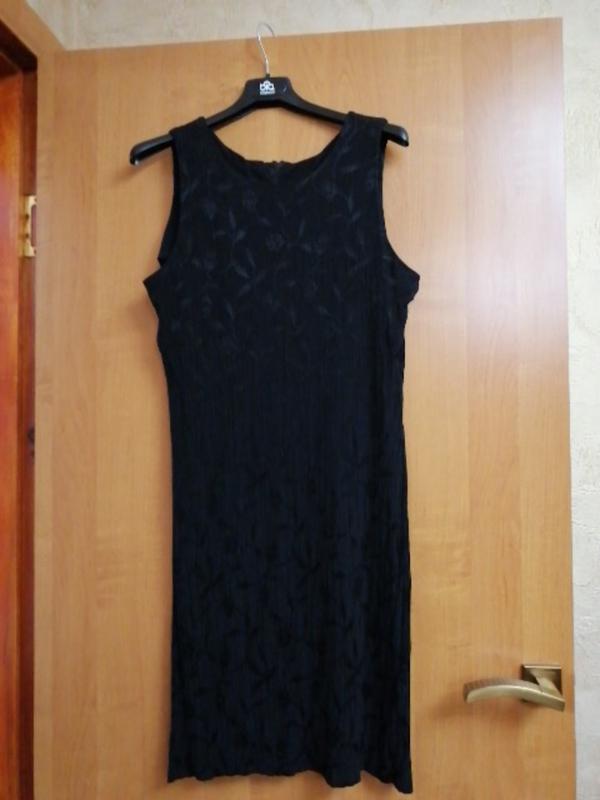 Чёрное платье жатка с цветочным принтом. Длина 90, Пог 45-50 тянется, Пот 38-48 тянется.