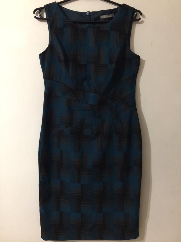 Без дефекта хоршее состояние размер 12/40 плечи 38 см подмышки 48 см талия 41 см бёдра 50 см ширина низа 46 см пройма 22 см длина от плеча 100 см сзади разрез 19 см и змейка на подкладке цвет бирюзовый/серый/черный