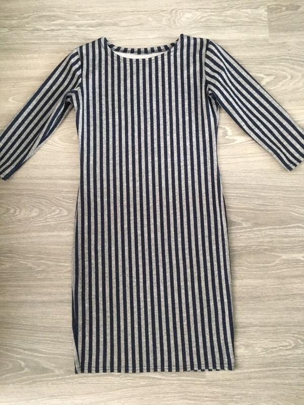Простое платье в полосочку,чуть ниже колен и рукавчик три четверти в хорошем состоянии!