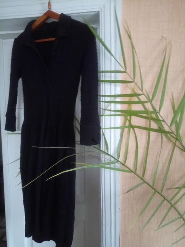Трикотажне плаття під поясок від Mango. Цікавий дизайн, насичений чорний колір. Рукав 3/4 Плечі 34 ПОГ 37 ПОТ 33 ДИ 94 Добре тягнеться. У чудовому стані, без нюансів. Верх букле, низ тонкий гладкий трикотаж. Маркувальні етикетки всередині виробу зрізані.