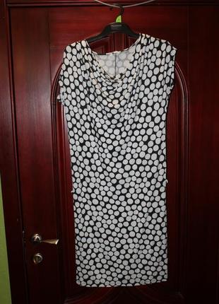 Красивое трикотажное платье в горох разм. М от Hema. Бирка с составом срезана, на ощупь вискоза с эластаном, тянется. Не синтетика! Состояние нового, без дефектов и следов носки. замерчики: Довжина 100см, ПОГ 54см, ПОБ 49см. Плюс тягнеться, бо трикотажне