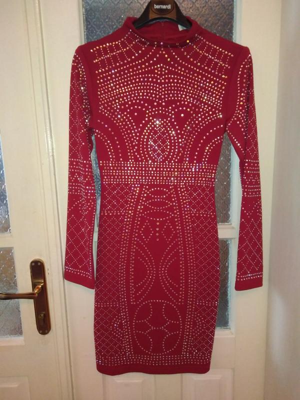 бандажна сукня,нереально переливається,камінчики міцно сидять,є блискавка на спинці Довжина рукава 60см ПОГ 37 ПОТ 31 довжина від горловини 92см
