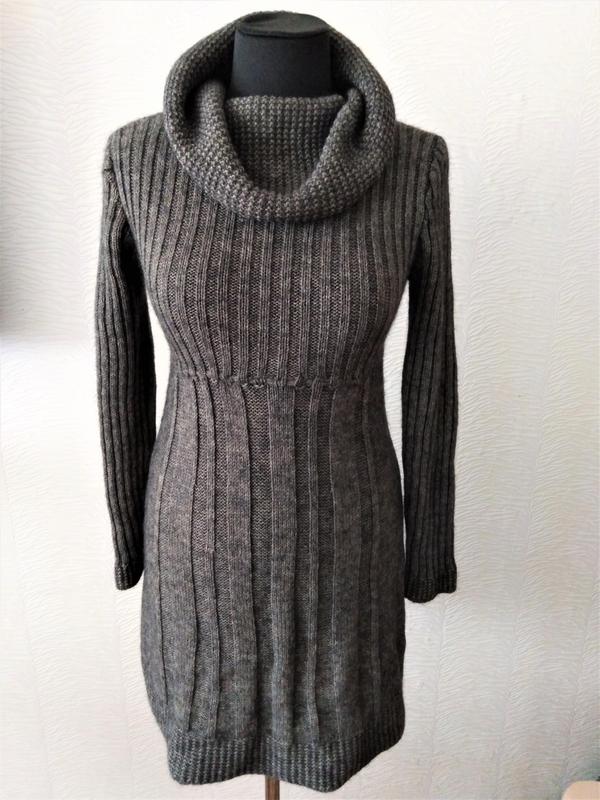 Сделано в Италии, замечательный состав пряжи, очень теплое и очень легкое платье. Длина 83, плечи 38, грудь 36, талия 30, рукав 60, бедра 43, низ 62, высота хомута 24. Очень хорошо тянется.
