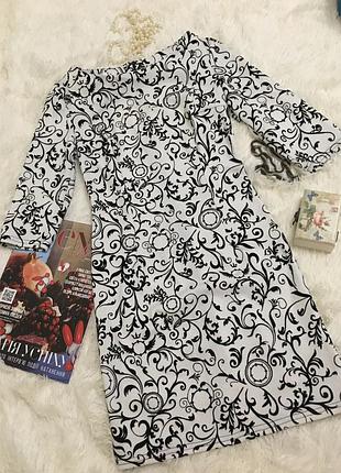 Платье абсолютно новое, но без бирки{ Обрезала, и ни разу не одела. Заявленный размер М, но в реальности это S, поэтому его указываю в объявлении. Пошив приталенный. Приятная к телу ткань. Чёрный рисунок выбит на ткани, ткань неоднородная на ощупь. Подойдёт на любой период, кроме жаркого летнего. Длина - 84 см. По плечам - 39 см. По груди - 40 см. {спереди объемнее }} По талии - 34 см. По низу - 42 см. Ещё немного тянется. При покупке от 2-х вещей скидка🌹 Оплата на карту, доставка новой почтой, укрпочтой. Смотрите и другие мои объявления, много хорошей качественной одежды по приятным ценам. 😉