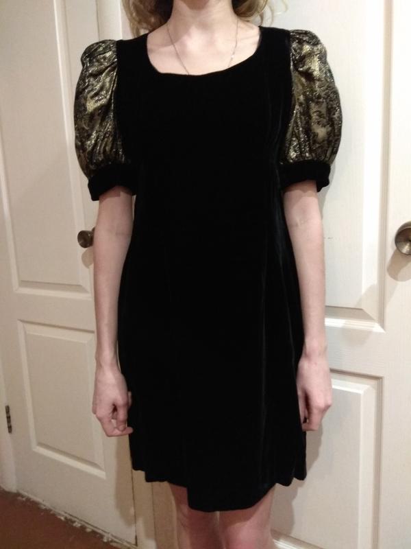Очень красивое винтажное платье из бархата.модный рукав фонарик из парчи